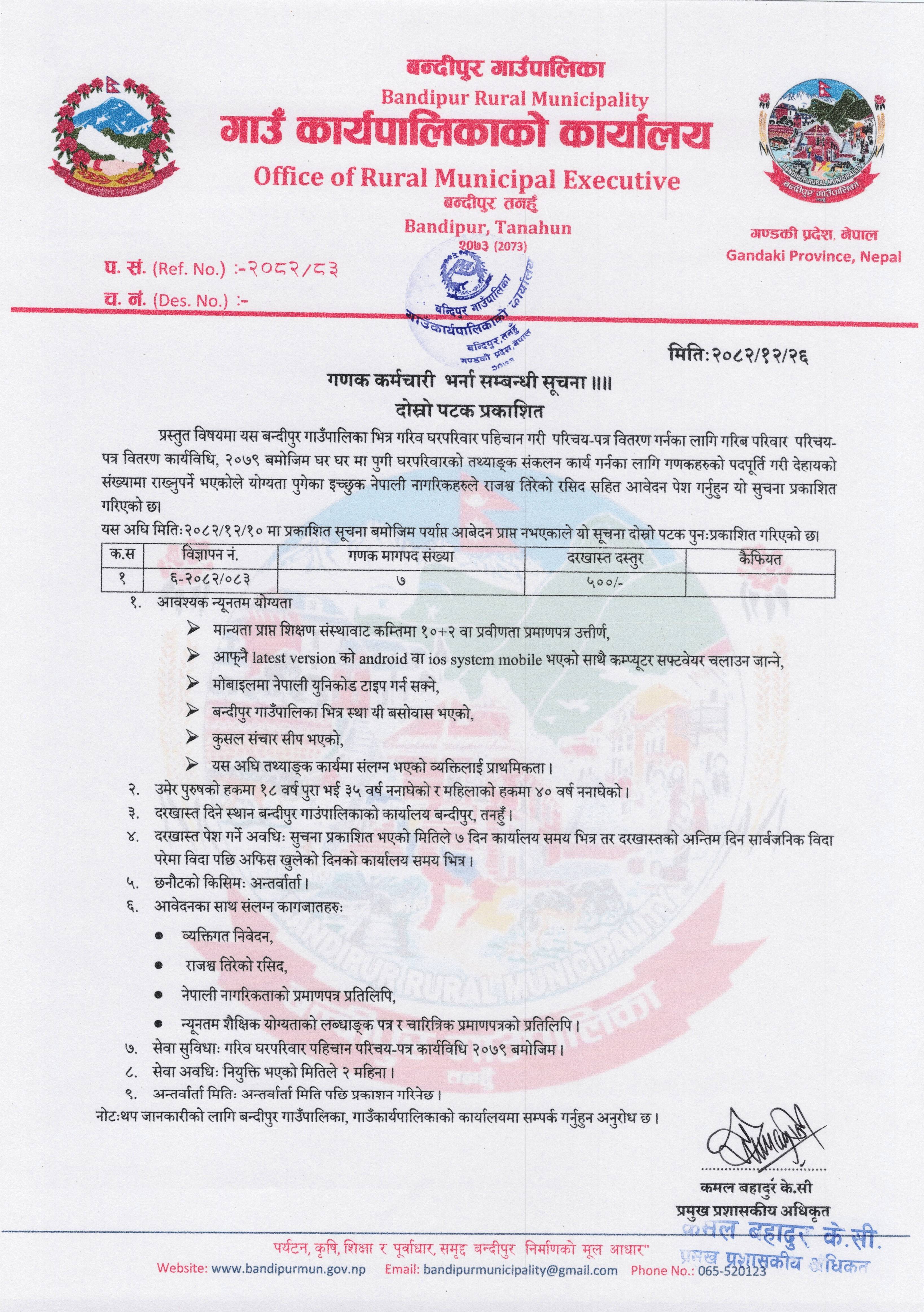 info@bandipurmun.gov.np / bandipurmunicipality@gmail.com