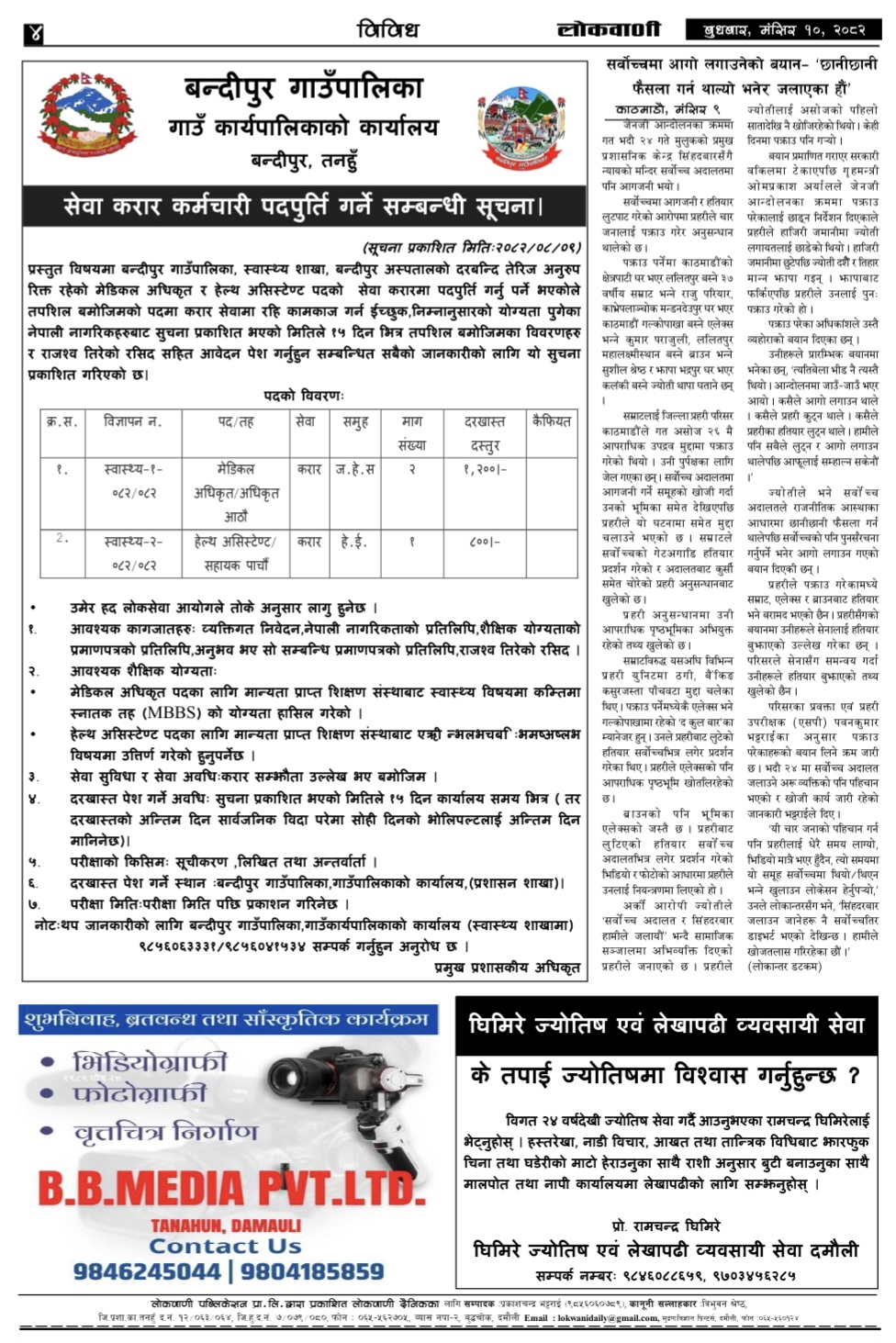 आ.व.२०८२/०८३ मा बन्दीपुर गाउँपालिकाको आफ्नो क्षेत्रभित्र विज्ञापन शुल्क संकलन सम्बन्धी कार्यको बोलपत्र प्रस्ताव आह्वान सम्बन्धी सूचना।