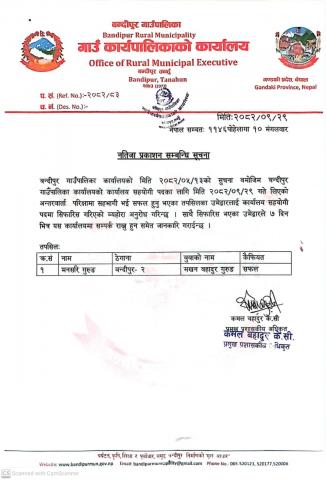 नतिजा प्रकाशन सम्बन्धि सूचना।