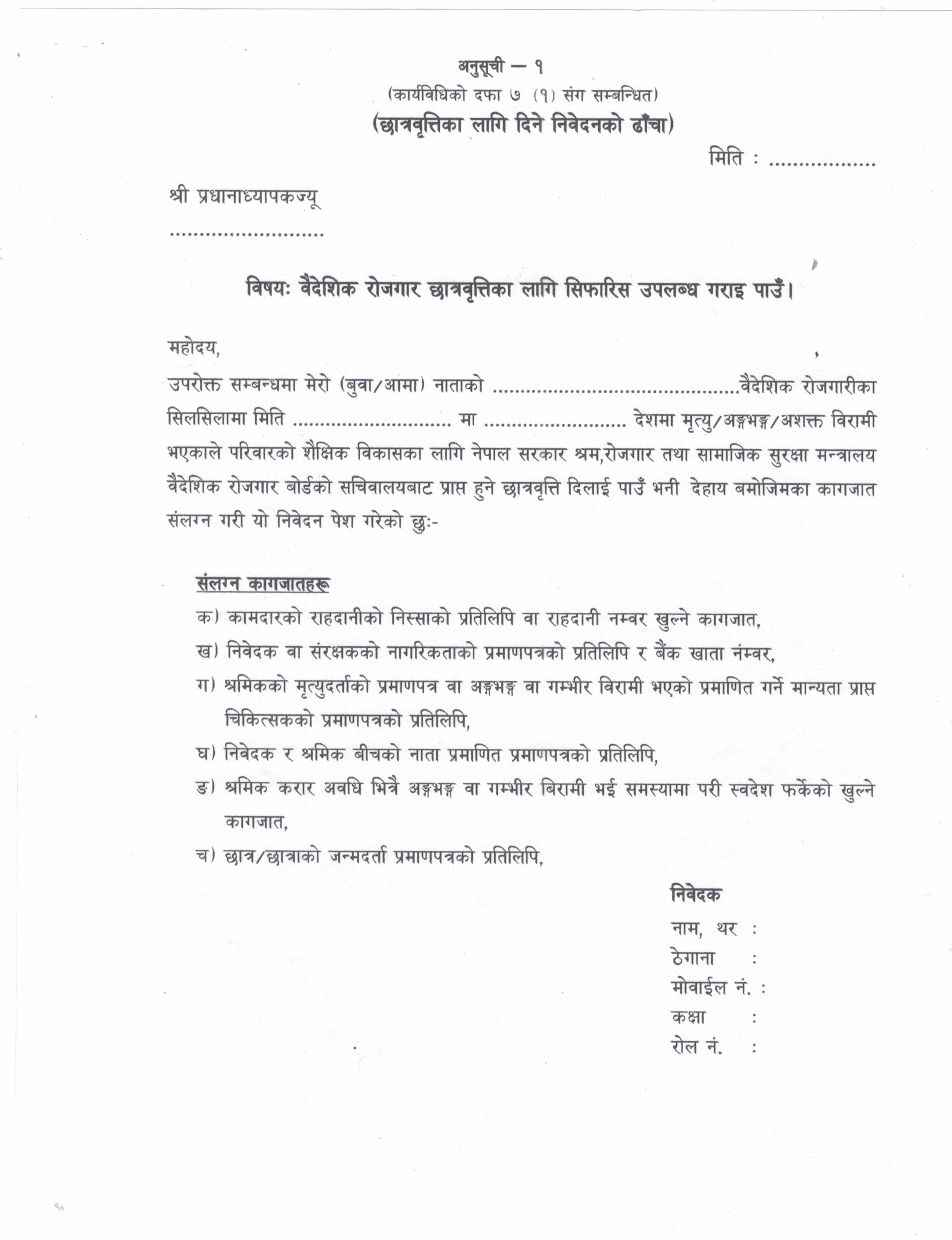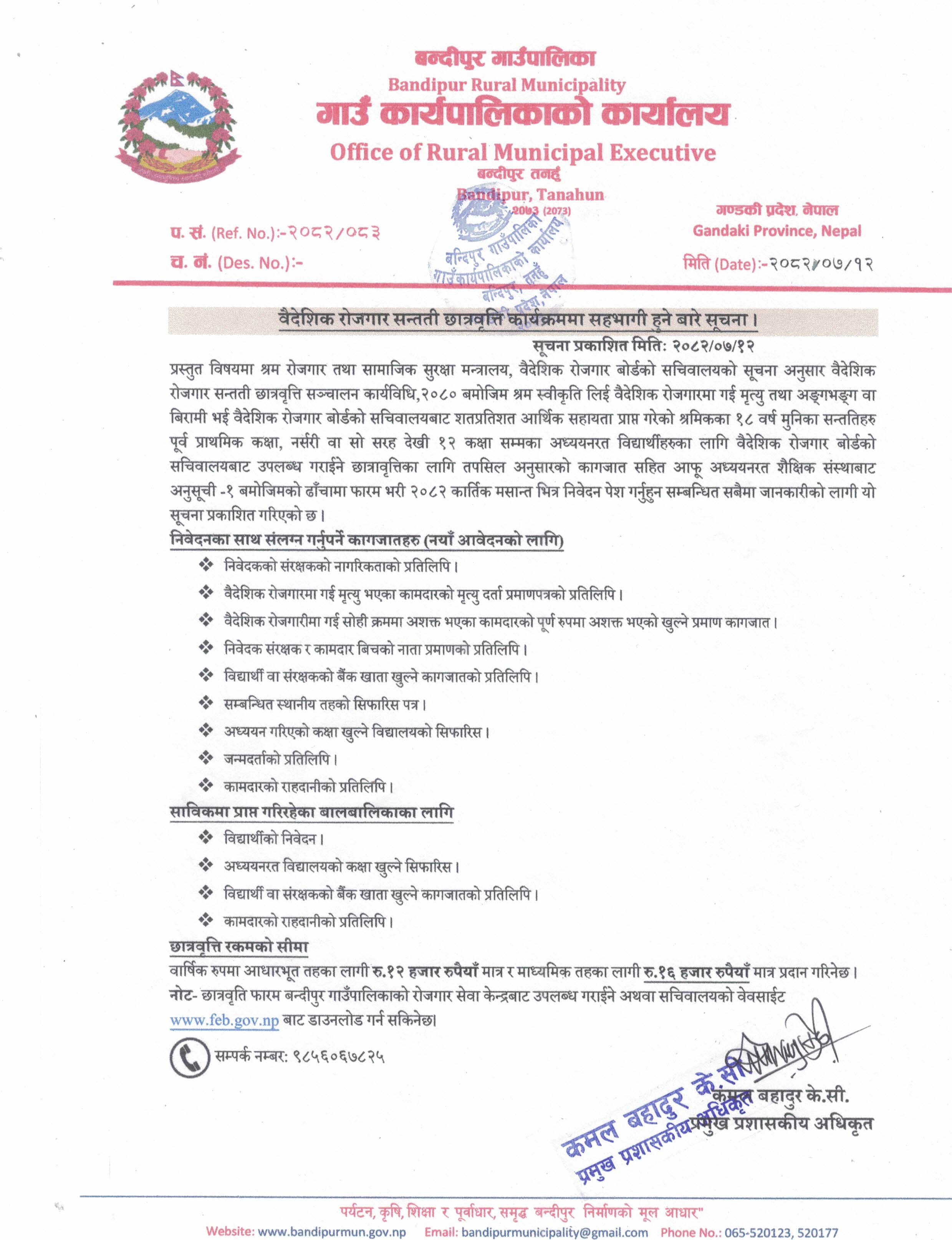 वैदेशिक रोजगार सन्तति छात्रवृत्ति कार्यक्रममा सहभागी हुने बारे सूचना।