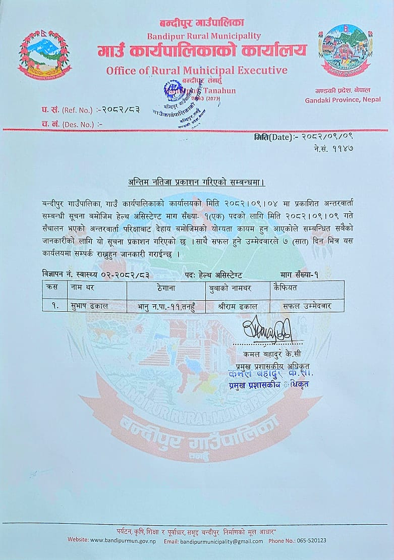 info@bandipurmun.gov.np / bandipurmunicipality@gmail.com