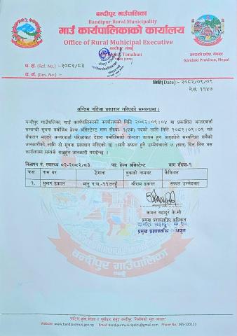 अन्तिम नतिजा प्रकाशन सम्बन्धी सूचना।