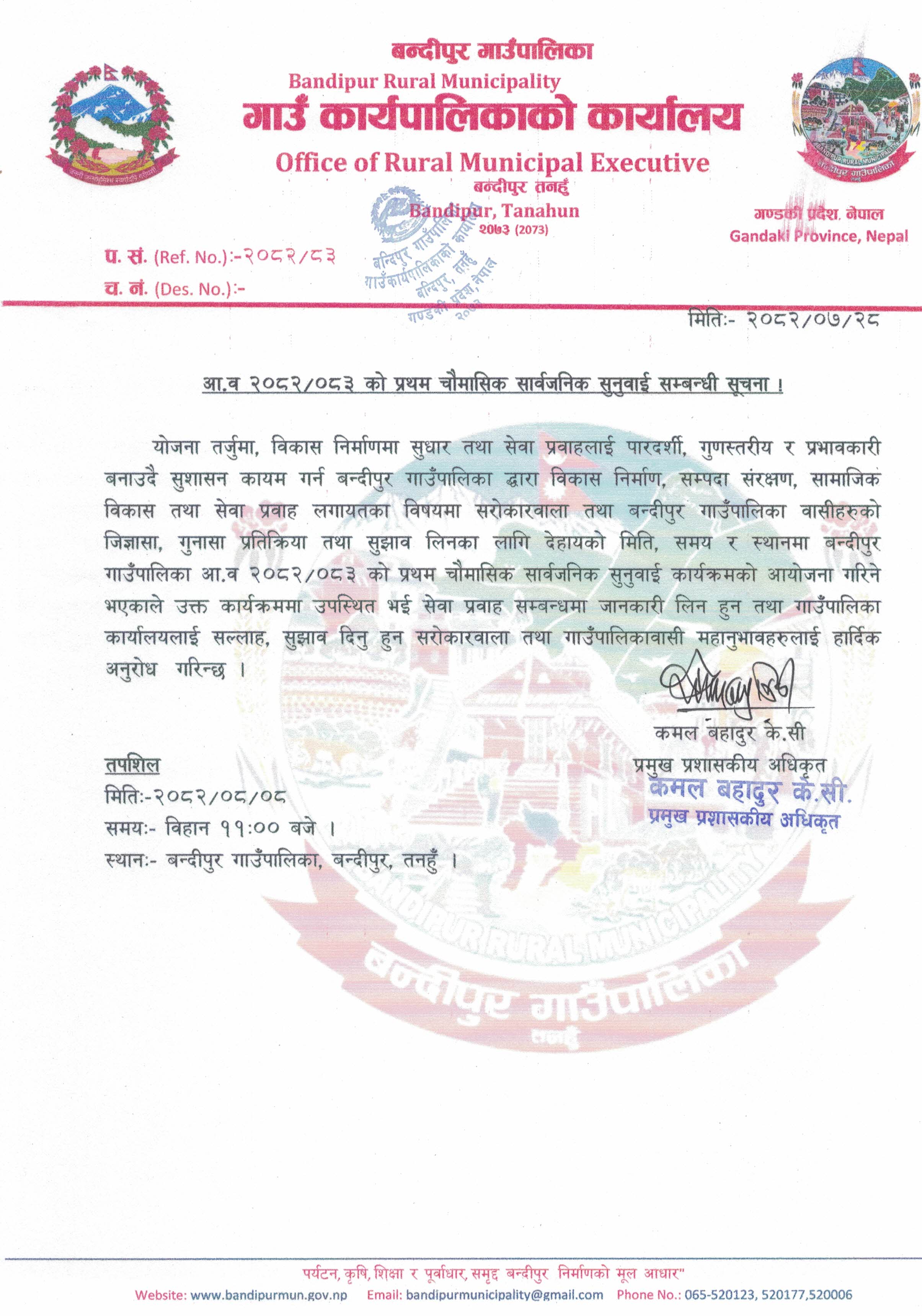 info@bandipurmun.gov.np / bandipurmunicipality@gmail.com