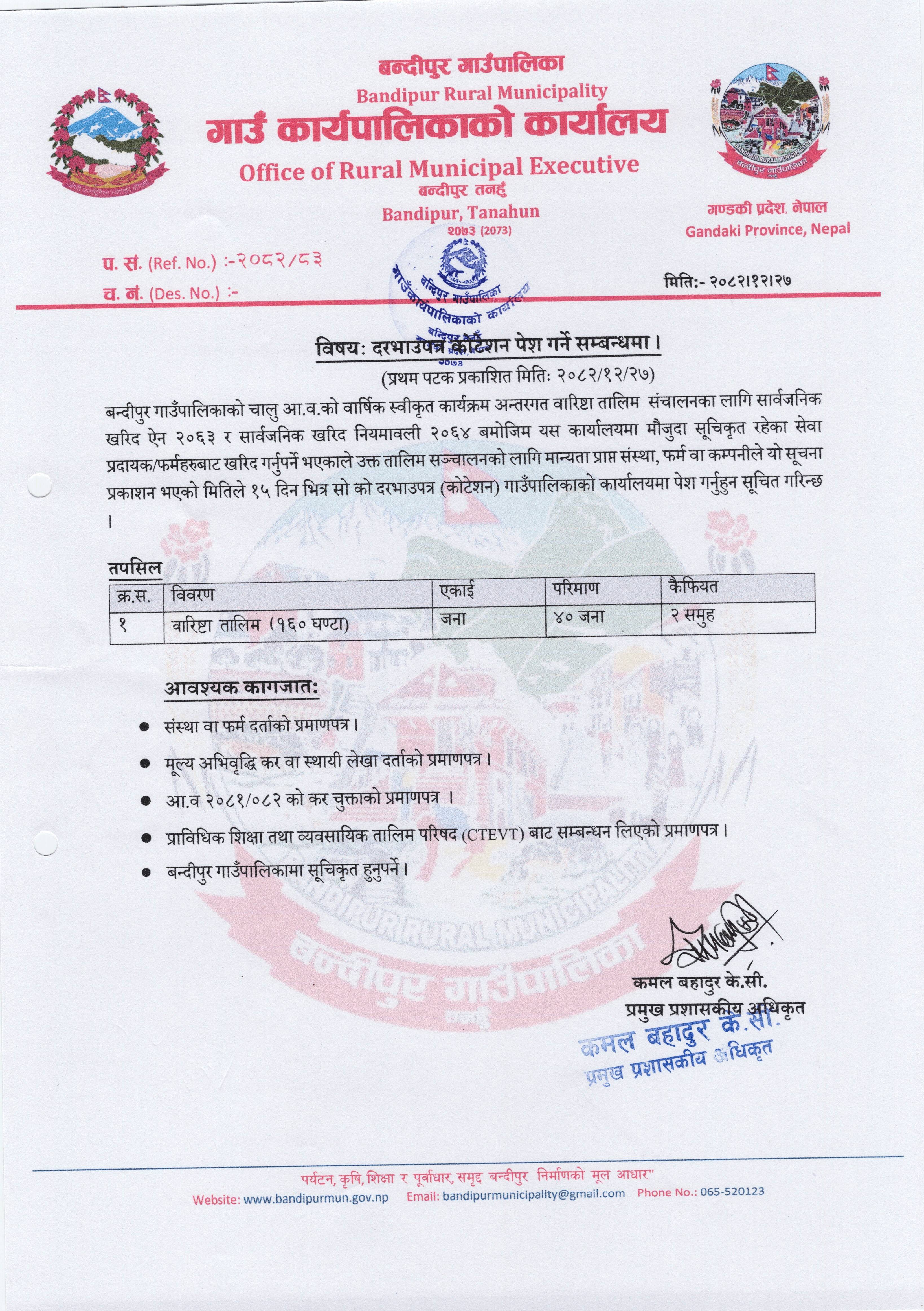 दरभाउपत्र कोटेशन पेश गर्ने सम्बन्धमा ।