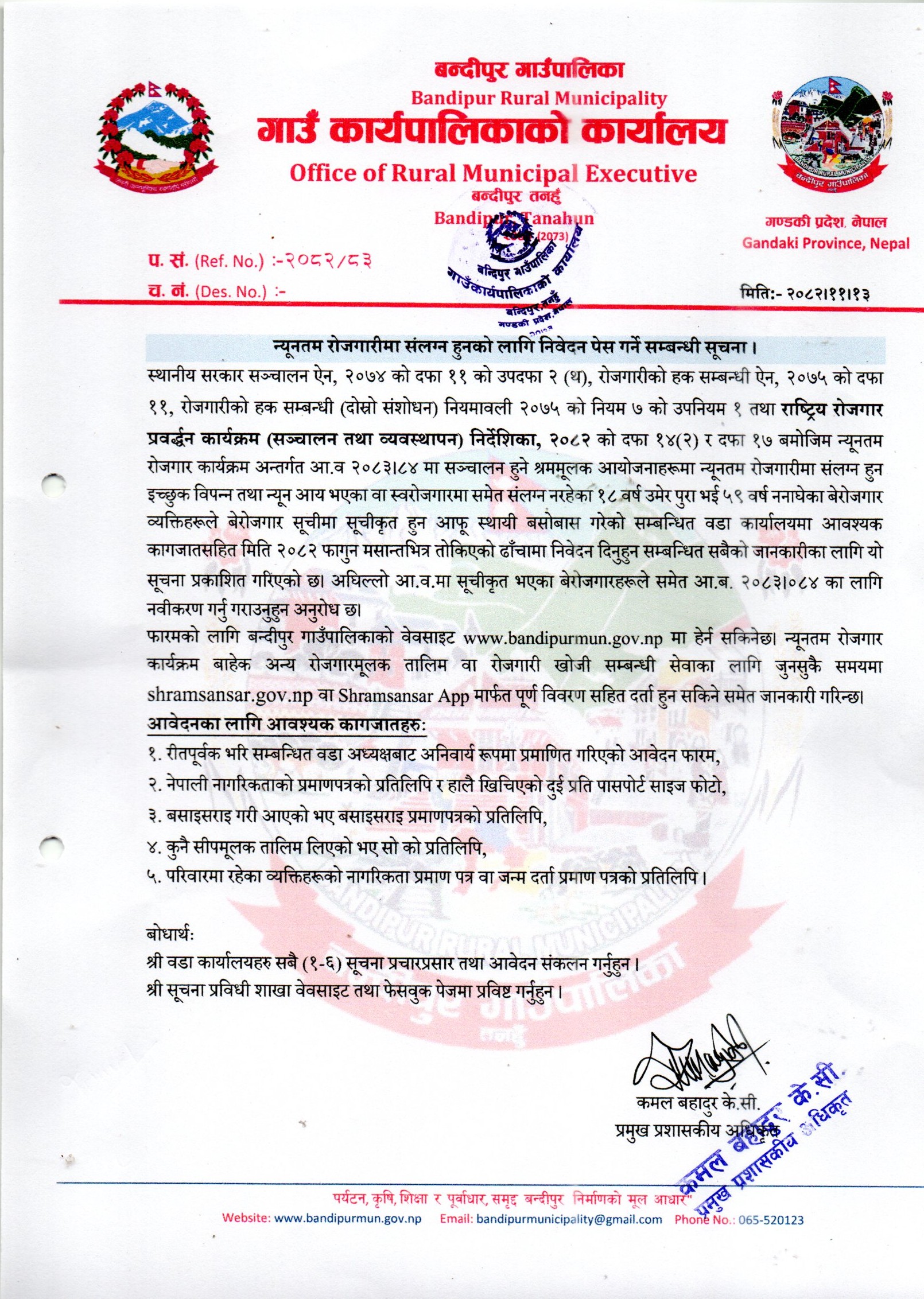 info@bandipurmun.gov.np / bandipurmunicipality@gmail.com