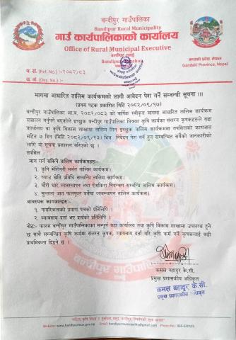 मागमा आधारित तालिम कार्यक्रमको लागि आवेदन पेश गर्ने सम्बन्धी सूचना।