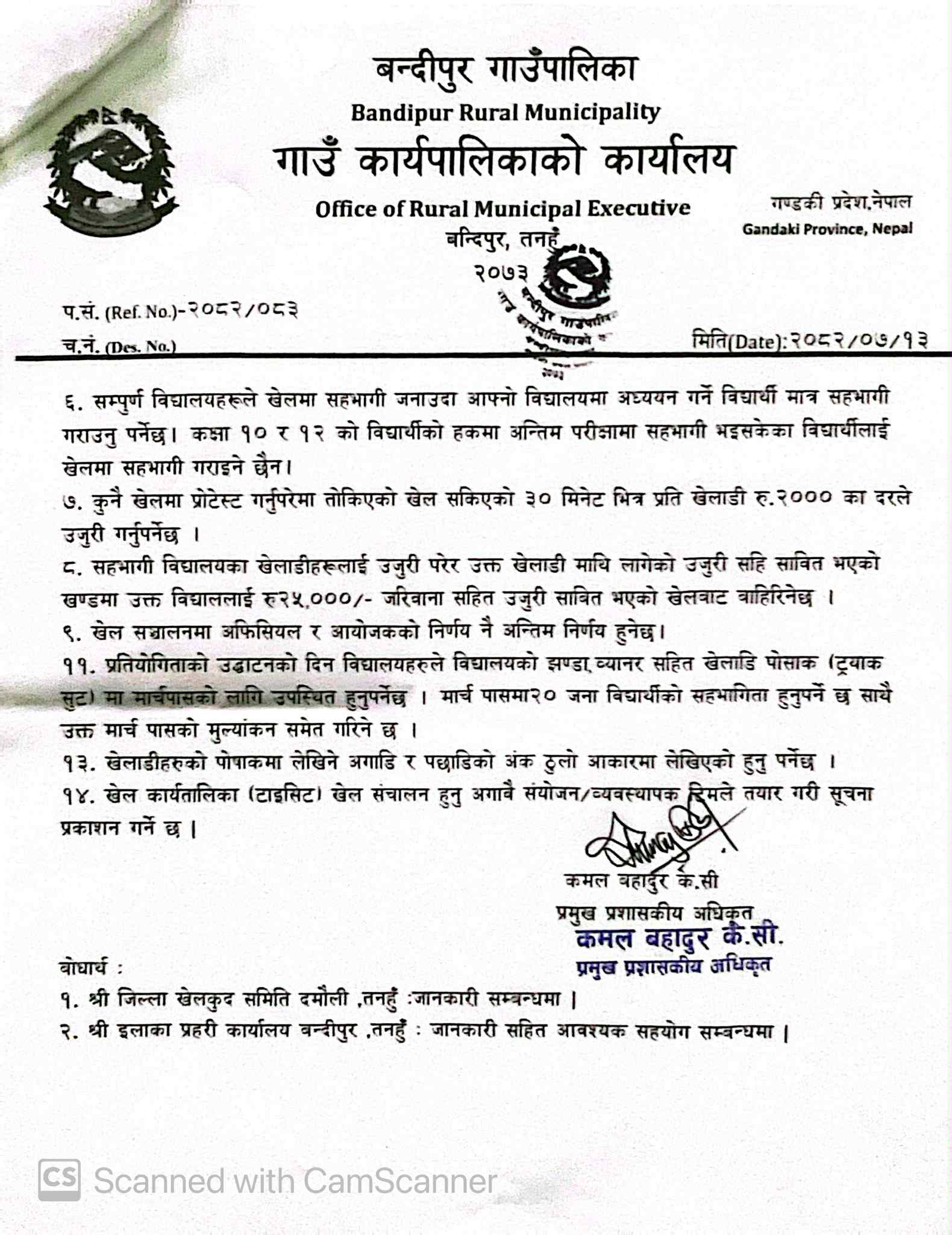 Bandipur Rural Municipality, Office of the Rural Municipal Executive