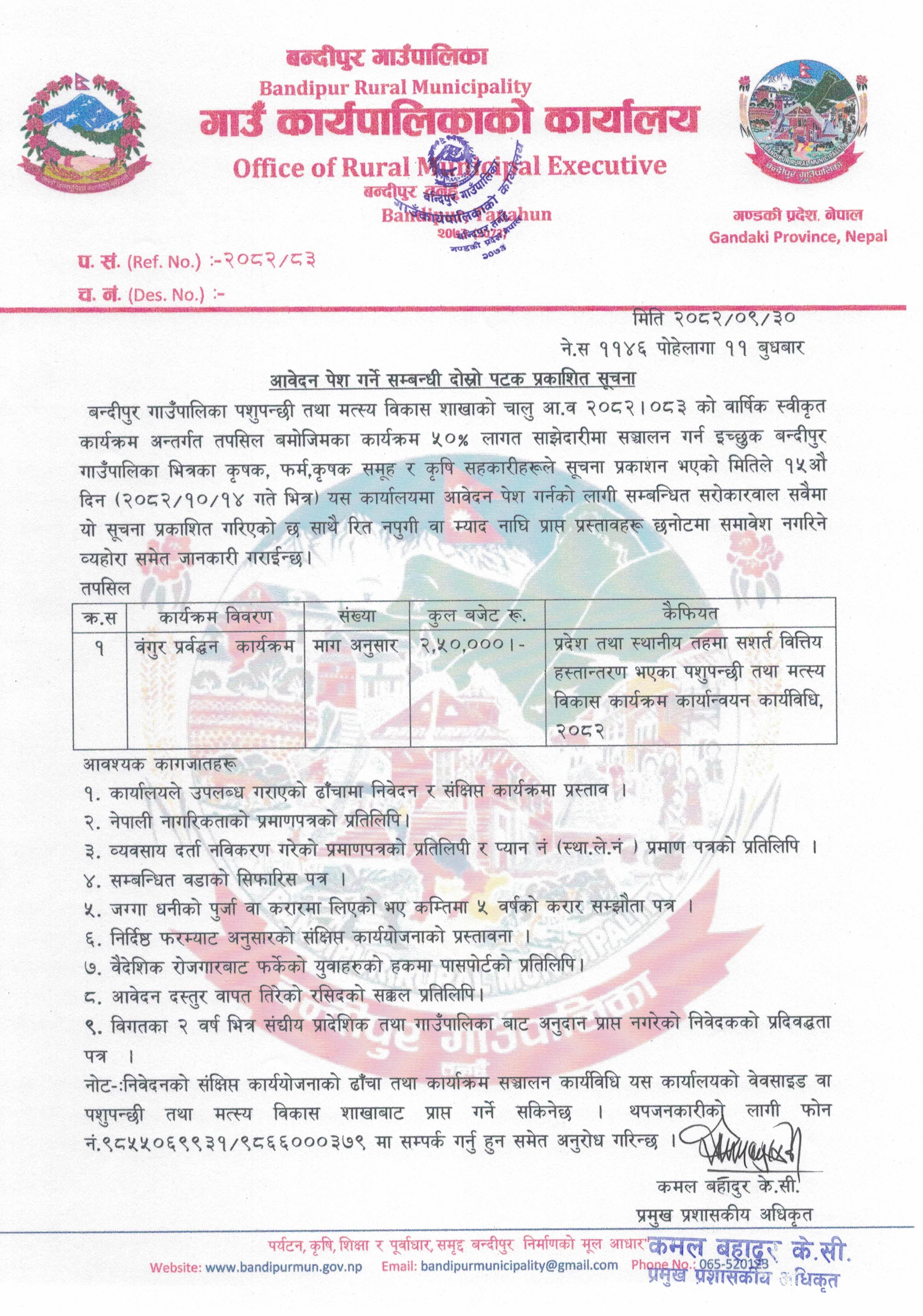 info@bandipurmun.gov.np / bandipurmunicipality@gmail.com