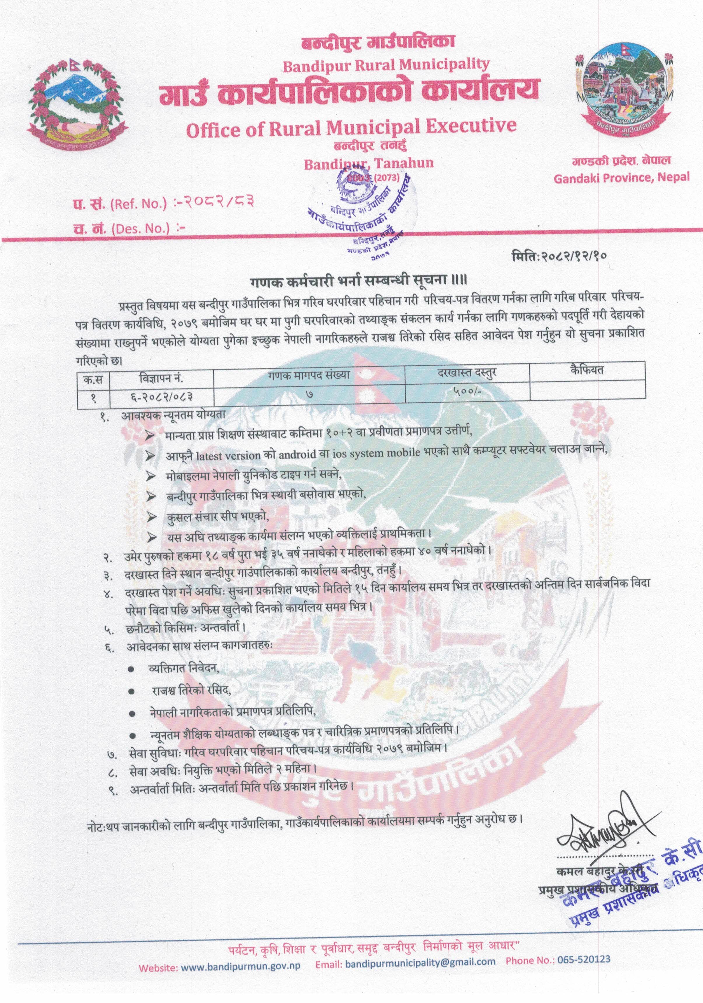 info@bandipurmun.gov.np / bandipurmunicipality@gmail.com