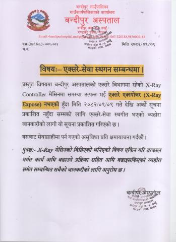बन्दीपुर अस्पतालको एक्सरे-सेवा स्थगन सम्बन्धमा।