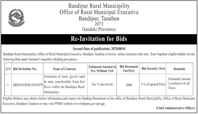 बोलपत्र आह्वानको सूचना (दोस्रो पटक)
