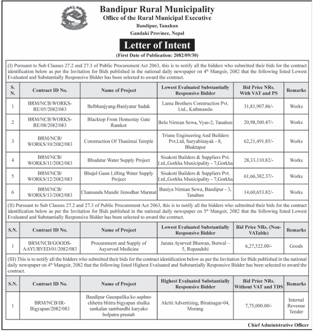 सार्वजनिक खरिद/बोलपत्र सूचना